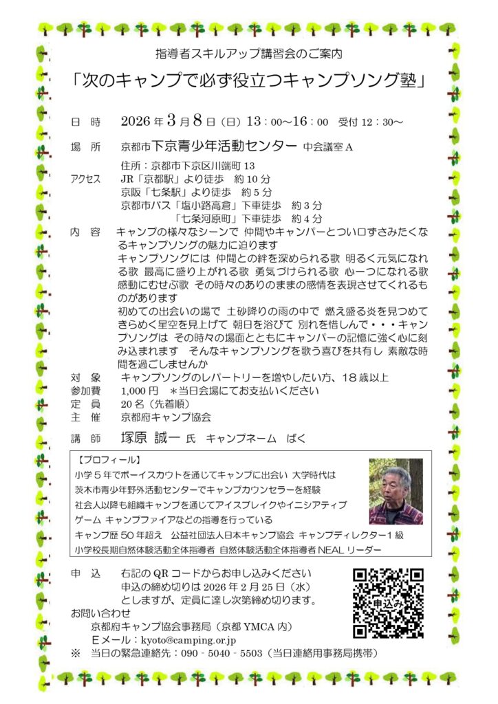 締切り 2026年2月25日(水)としますが、定員に達し次第締め切ります。